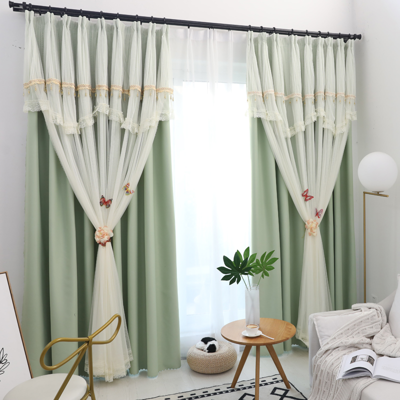おしゃれ 宮殿風 2重デザイン お姫系 北欧スタイル ドレープ&レース一体型デザイン 遮光カーテン 2倍ヒダ