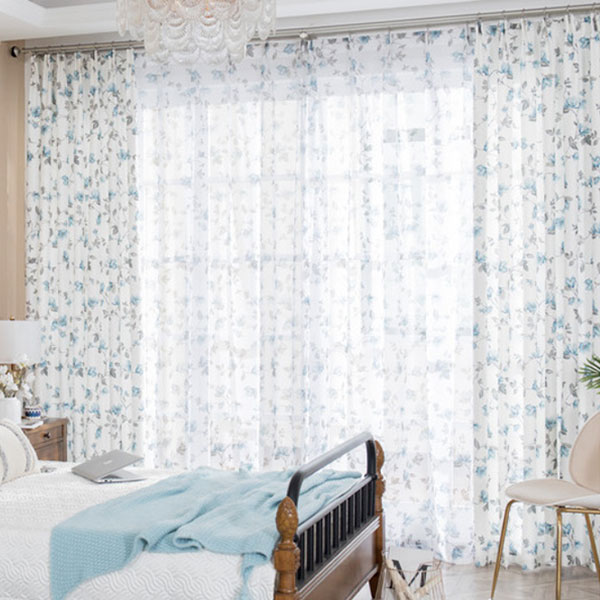 【2枚組】【セット】田園風 清新感のあるジャカード お花デザイン ドレープ1枚&レース1枚 カーテンセット 半遮光 2倍ヒダ