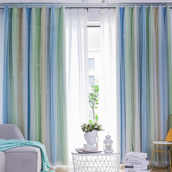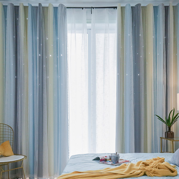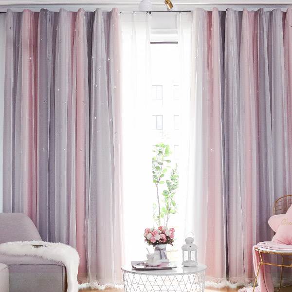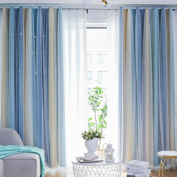 【一体型】目を奪われる ドレープ&レース一体型 透かし彫り星 遮光1級 遮熱 おしゃれ カーテン 2倍ヒダ
