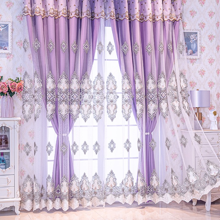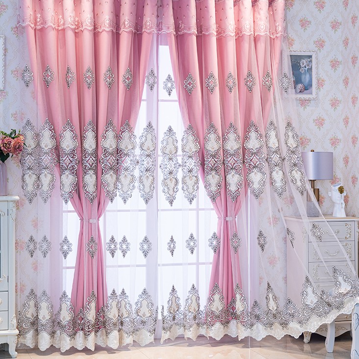 おしゃれ ins超人気 欧風 姫系 かわいい 優しい雰囲気 一級遮光 安眠 ドレープ+レース 一体型カーテン 2倍ヒダ