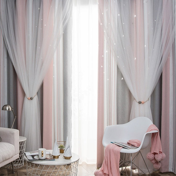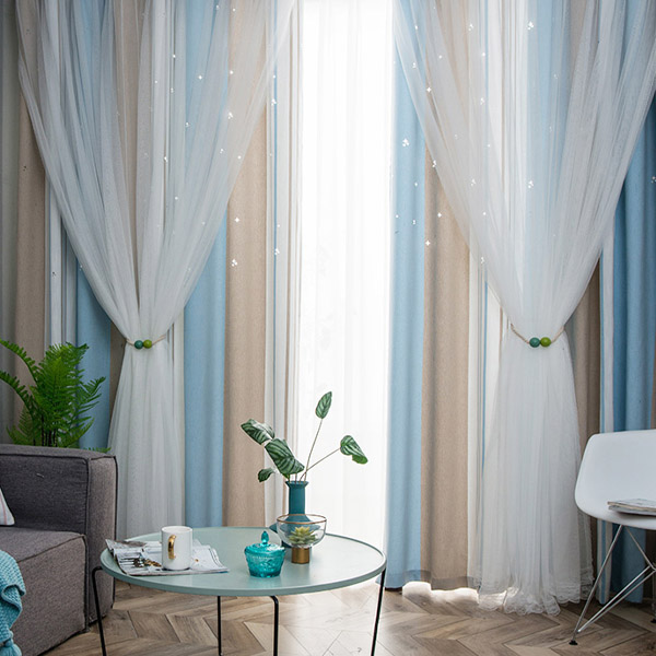 おしゃれ 透かし彫り星柄 ドレープとレース一体型カーテン 垂れ感 防音 シンプル 遮光 カーテン 2倍ヒダ