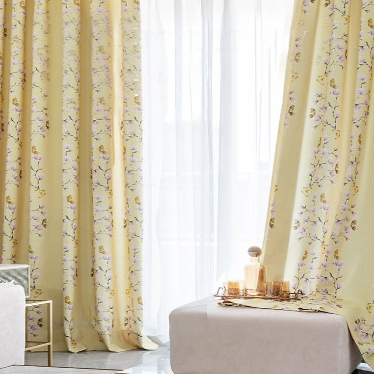 【2枚組】チュラルな雰囲気を溢れる おしゃれ 激安価 北欧風 花柄 半遮光 セットカーテン 2倍ヒダ
