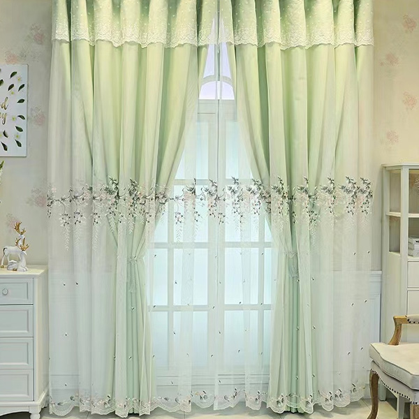 姫系 花柄刺繍 おしゃれ シンプル レープとレース一体型カーテン 遮光1級 遮音 断熱保温 2倍ヒダ