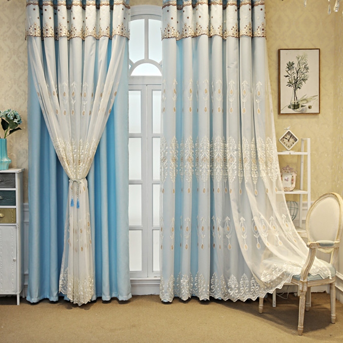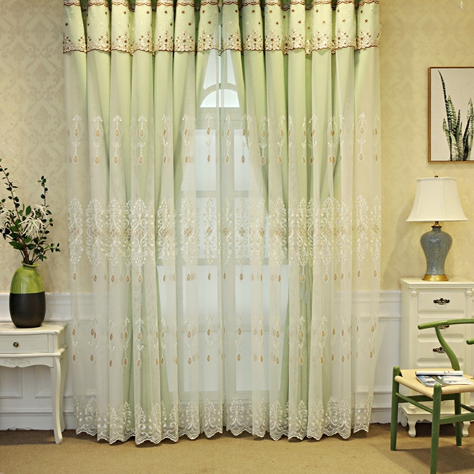 一体型 上品なロマンチック 花柄 刺繍ドレープ&レース一体型 カーテン 遮光 2倍ヒダ