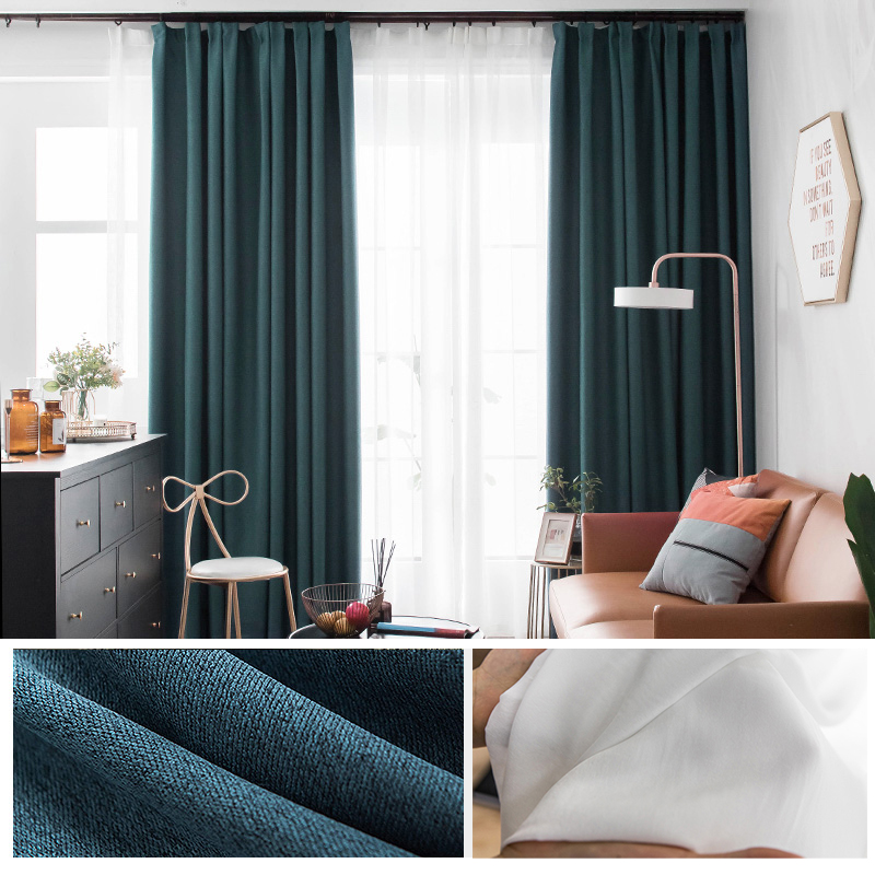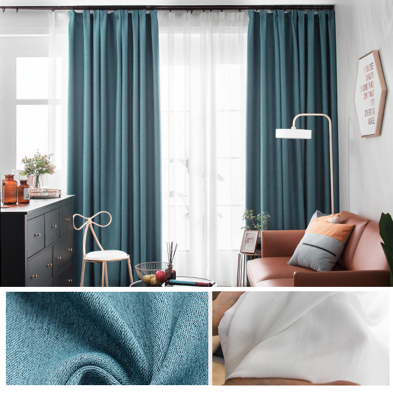 【2枚組】おしゃれ 全10色 遮光カーテン 綿麻 断熱保温 無地 厚地 シンプル リビングルーム 高機能 遮光1級 ドレープ+レース セットカーテン 2倍ヒダ