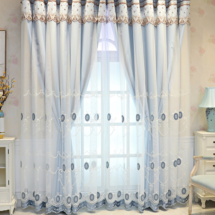 おしゃれ 二重 刺繡入り エレガント 遮光1級 遮熱保温 一体型カーテン 2倍ヒダ