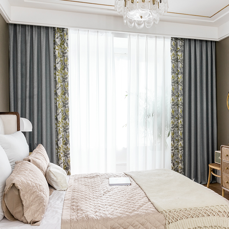 【2枚組】おしゃれ 遮光1級 遮熱保温 遮音 北欧風デザイン シンプル 切り替えセットカーテン 2倍ヒダ