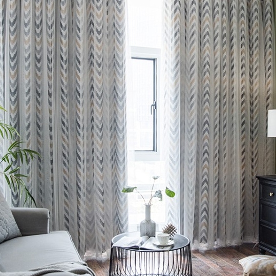 北欧 シンプル 配色 波模様 快適 遮光 遮熱 UVカットドレープ&レース 一体型カーテン 2倍ヒダ