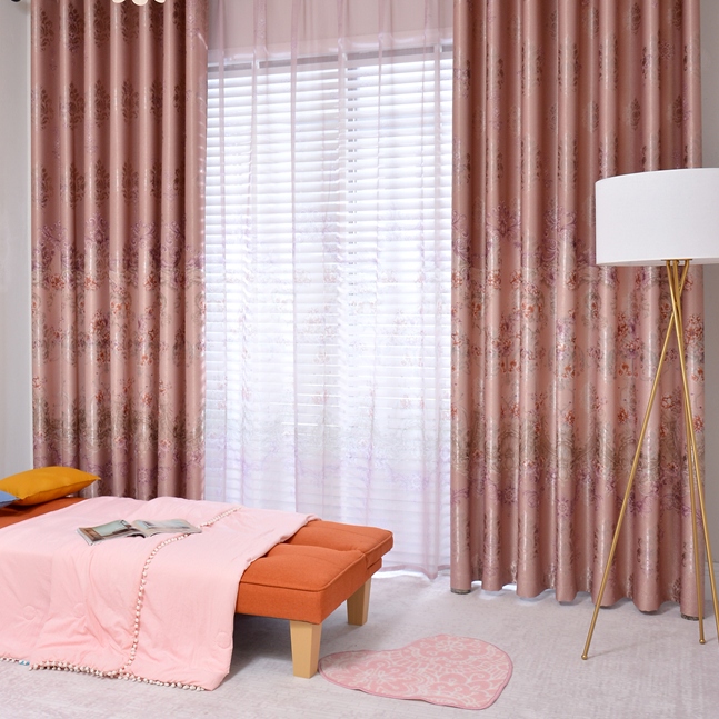 【2枚組】【セット】 北欧 プリント花柄 遮光1級 断熱 ドレープ1枚&レース1枚 2倍ヒダ