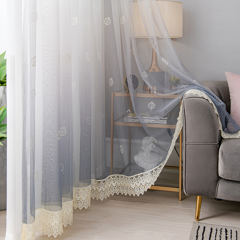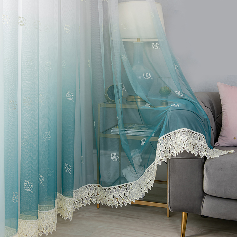 【4枚組】光を和らげる uvカット 癒やし空間 グラデーションデザイン プライバシー保護 おしゃれ 遮像 レース セットカーテン 2倍ヒダ