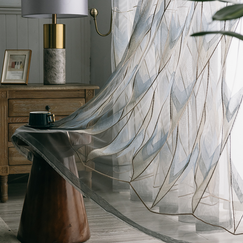 【2枚組】おしゃれ 遮像 ジオメトリック 繊細で絶妙な刺繍 UVカット 昼夜目隠し 爽やか 光を和らげる レース セットカーテン 2倍ヒダ