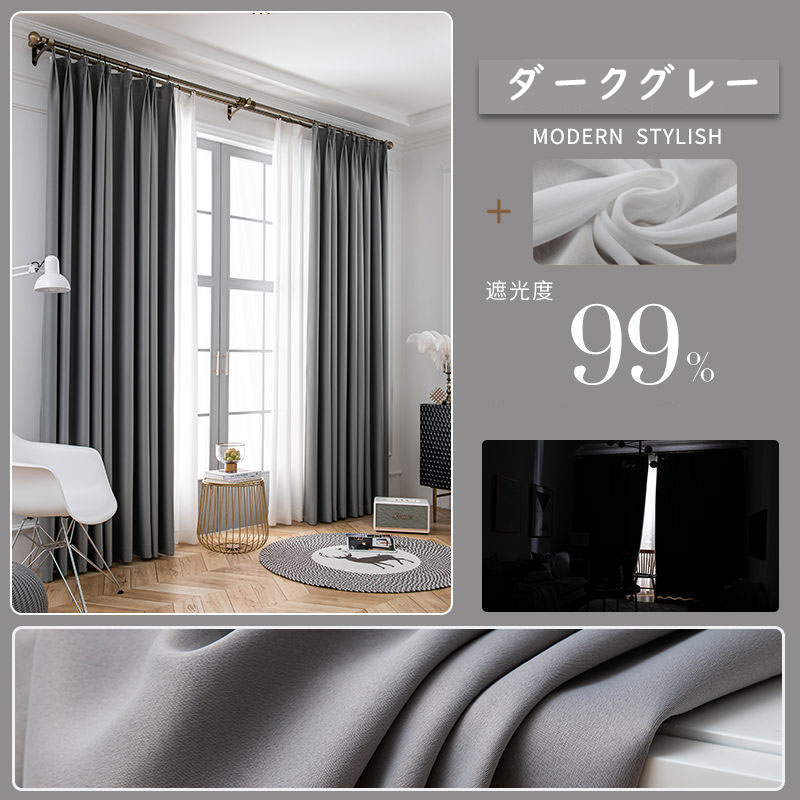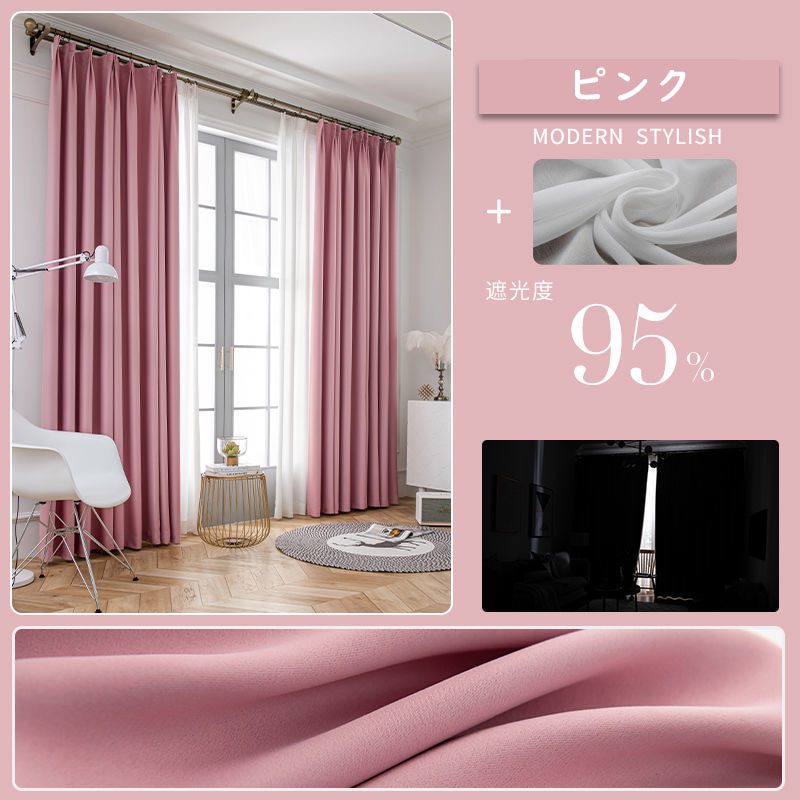 【2枚組】【遮光カーテン・遮光1級】 無地 シンプル 遮光 おしゃれ 長持ち 垂れ感 防音 1級遮光 8色 厚地 洗えるセットカーテン 2倍ヒダ