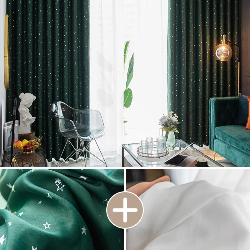 【2枚組】1級遮光 星柄 防寒 断熱 おしゃれな6色 防音 厚地 オーダーセットカーテン 2倍ヒダ