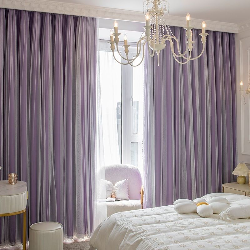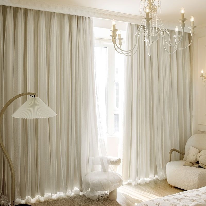 おしゃれ プリンセス風 全8色 お姫系 可愛い 遮光 遮像 UVカット 二重デザイン ドレープ+レース 一体型カーテン 2倍ヒダ