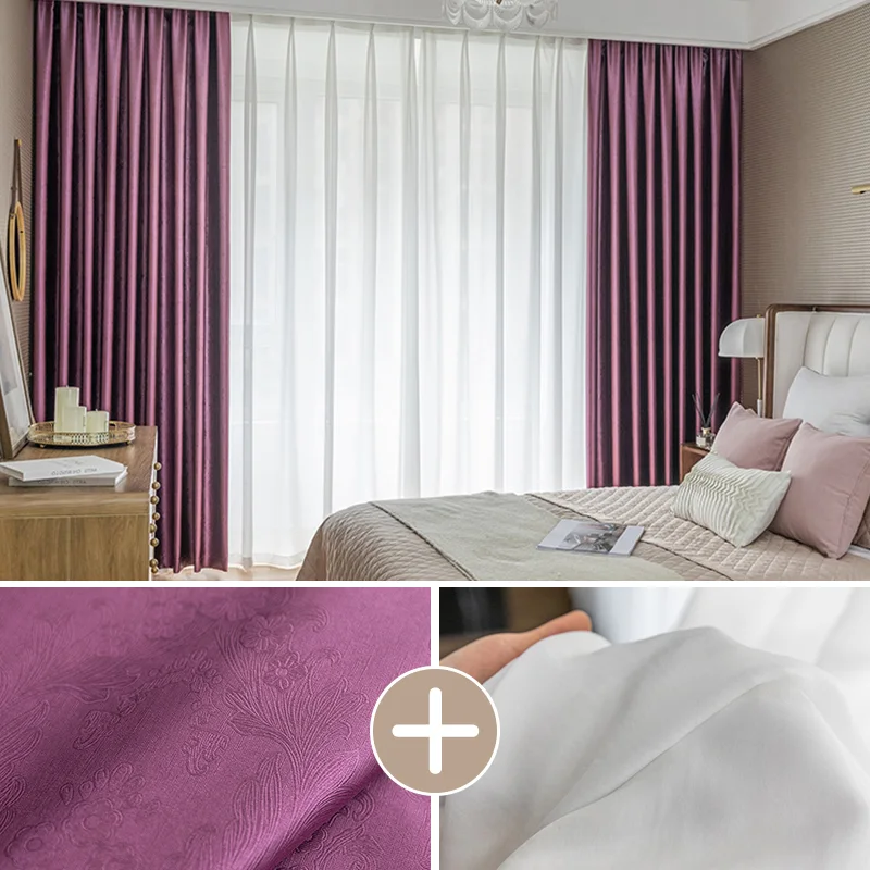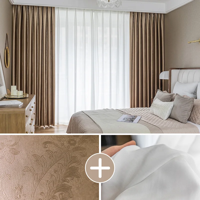 【2枚組】上品な材質 おしゃれなボタニカル柄 遮光1級 断熱保温 カーテンセット ドレープ1枚&レース1枚 2倍ヒダ お買い得