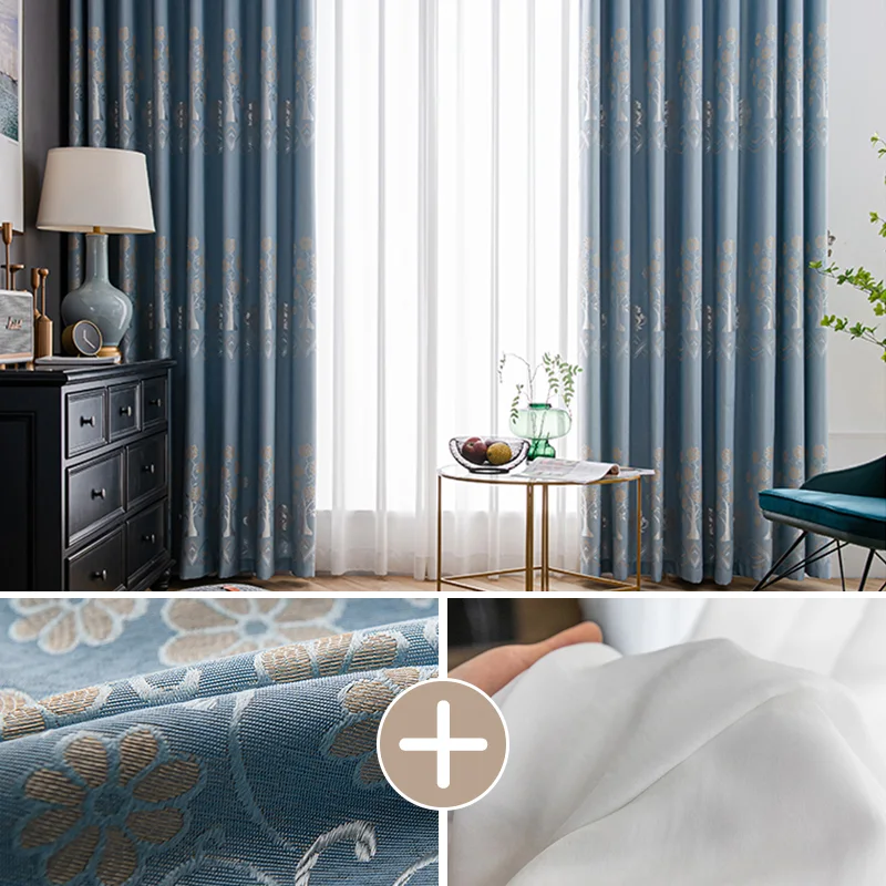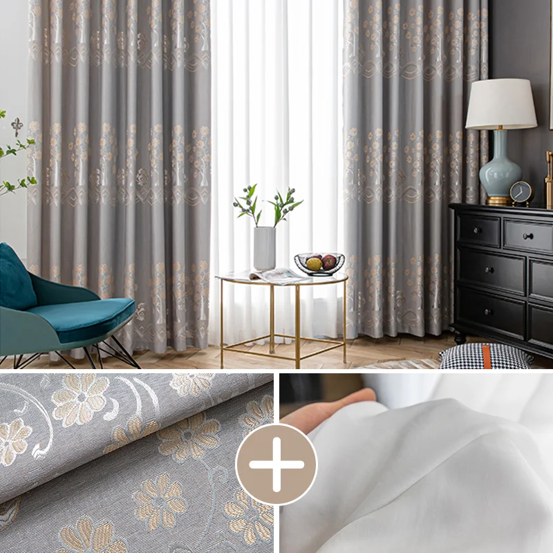 【2枚組】 ボタニカル柄 おしゃれ モダン シンプル 遮光 ドレープ1枚&レース1枚 セットカーテン 防寒 防音 遮熱 2倍ヒダ