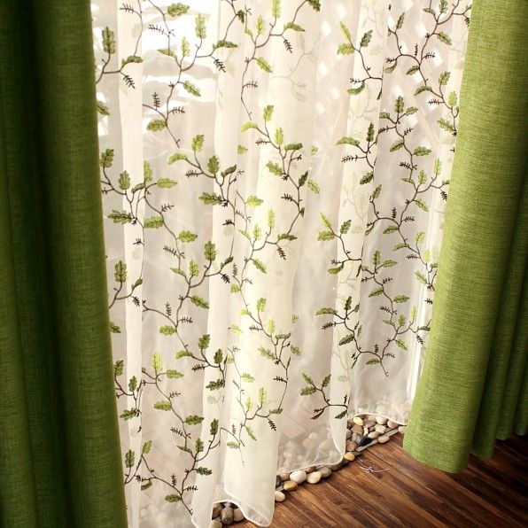 【2枚組】美しい刺繡 遮光1級 遮熱 保温 グリーン系 ボタニカル 北欧 セットカーテン 2倍ヒダ