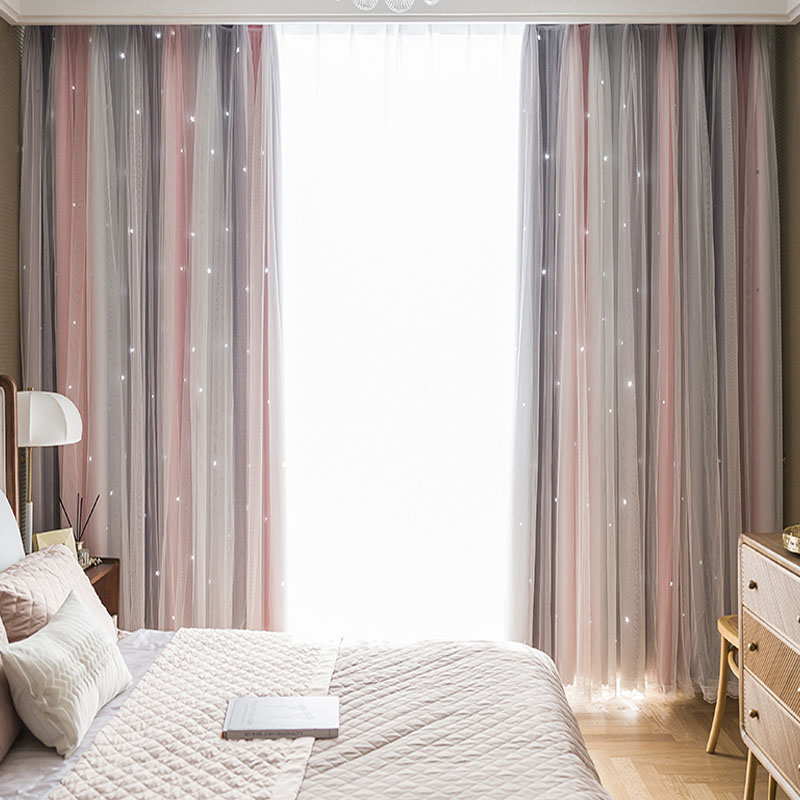 遮光1級 遮熱 保温 透かし彫り 星柄 グラデーション おしゃれな4色 一体型カーテン 2倍ヒダ